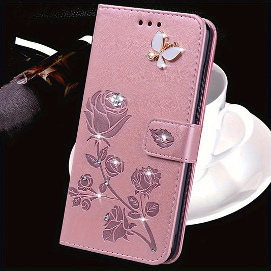 Elegant Butterfly Crystal Samsung ASeries Faux Leather Case