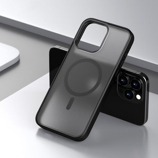 Premium Matte Black iPhone Case Shockproof Wireless Charging Magnetic Support